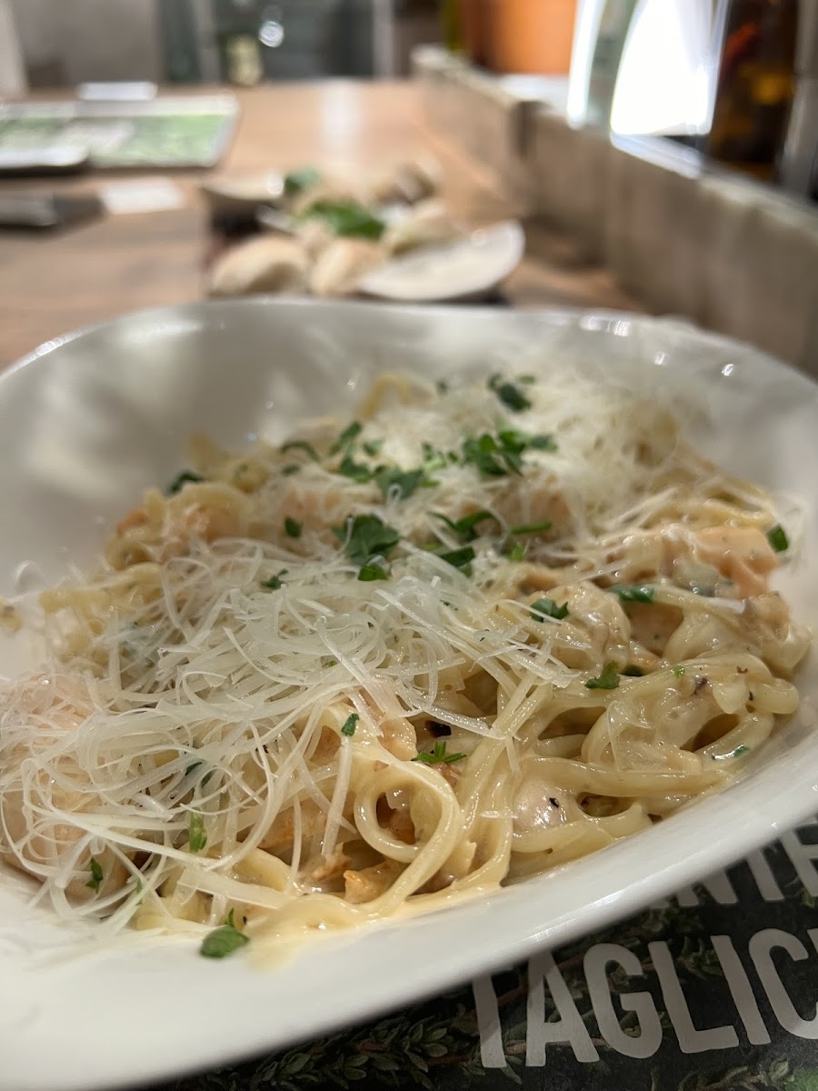 The location itself is spacious yet inviting. With large windows letting in natural light and an open kitchen that creates a sense of movement and energy, Vapiano creates a lively but comfortable space for dining. The layout is smart, with plenty of seating available for individuals or groups. It’s ideal for those looking for a more casual dining experience without sacrificing quality.
